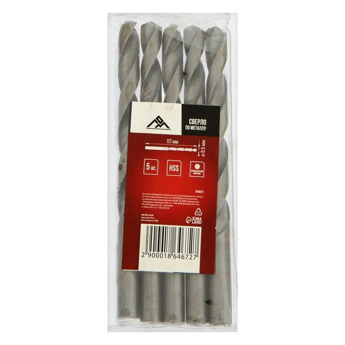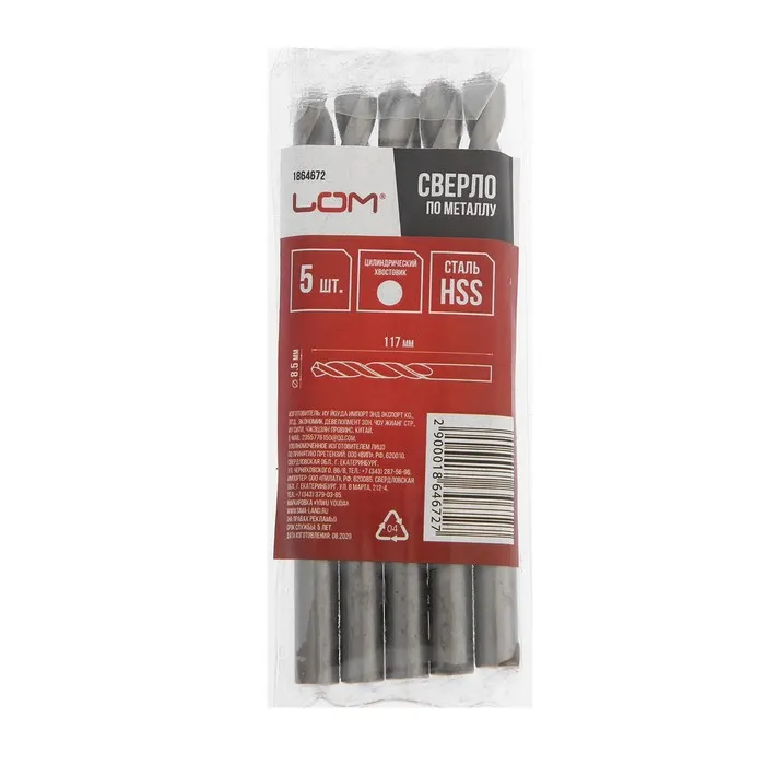 Сверло по металлу ЛОМ, HSS, цилиндрический хвостовик, 8.5 мм, 5 шт. — Характеристики