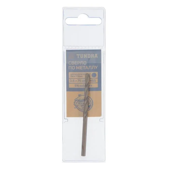 Сверло по металлу ТУНДРА, HSS-Co (5% кобальта), цилиндрический хвостовик, 3.8×75 мм — Характеристики