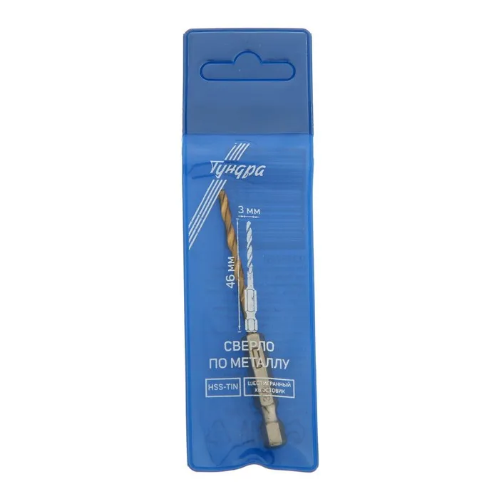 Сверло по металлу ТУНДРА, HSS-Tin, шестигранный хвостовик, 3×46 мм — Характеристики