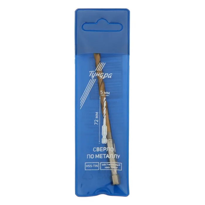 Сверло по металлу ТУНДРА, HSS-Tin, шестигранный хвостовик, 5×72 мм — Характеристики