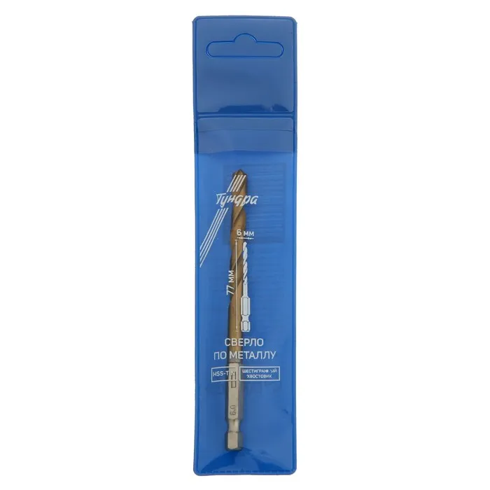Сверло по металлу ТУНДРА, HSS-Tin, шестигранный хвостовик, 6×77 мм — Характеристики