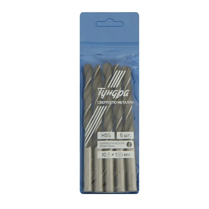 Сверло по металлу ТУНДРА, HSS, цилиндрический хвостовик, 10.5 мм, 5 шт. — Характеристики