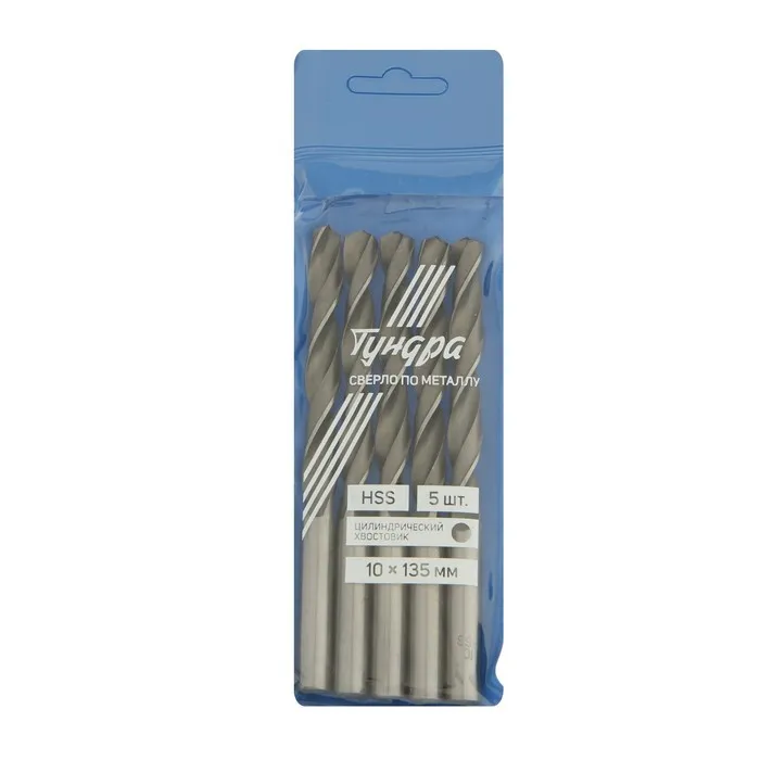 Сверло по металлу ТУНДРА, HSS, цилиндрический хвостовик, 10×135 мм, 5 шт. — Характеристики