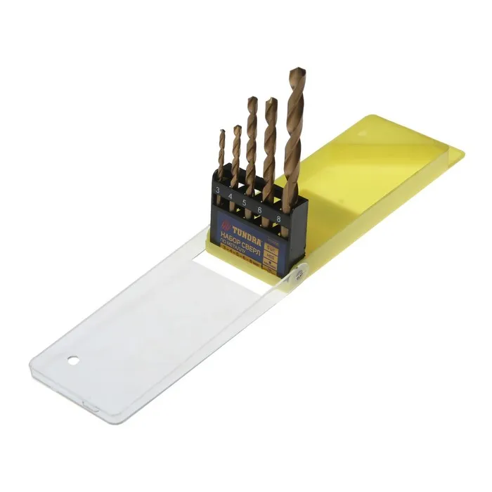 Свёрла ТУНДРА изготовлены из быстрорежущей стали высокой прочности и способны выдержать большие ударные нагрузки и перегревы, что увеличивает срок их службы. Они представляют собой инструменты винтовой формы с заострёнными концами. Такая оснастка без труда входит даже в самые твёрдые материалы и создаёт максимально точные отверстия.