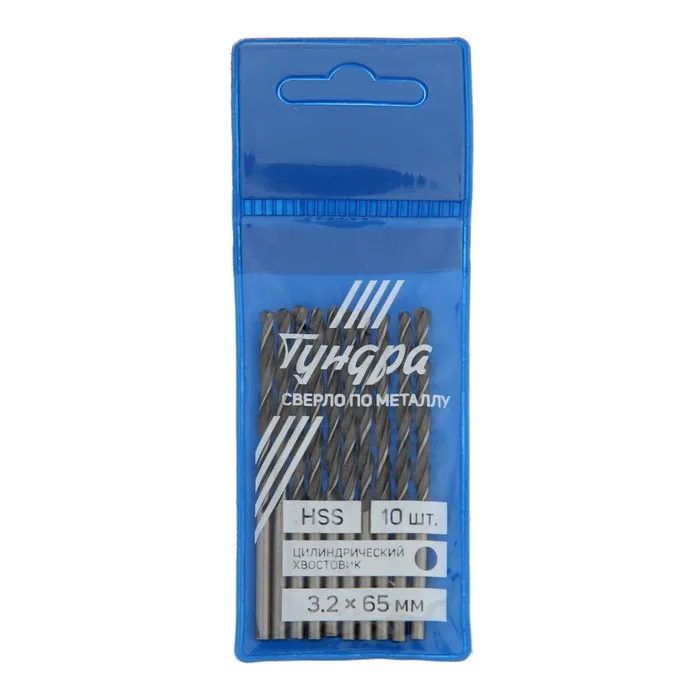 Сверло по металлу ТУНДРА, HSS, цилиндрический хвостовик, 3.2×65 мм, 10 шт. — Характеристики