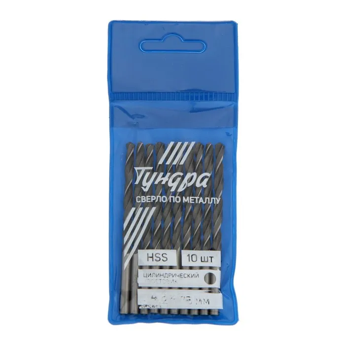 Сверло по металлу ТУНДРА, HSS, цилиндрический хвостовик, 4.2×75 мм, 10 шт. — Характеристики