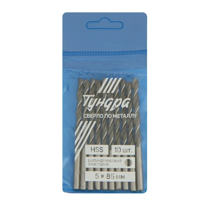 Сверло по металлу ТУНДРА, HSS, цилиндрический хвостовик, 5×85 мм, 10 шт.
