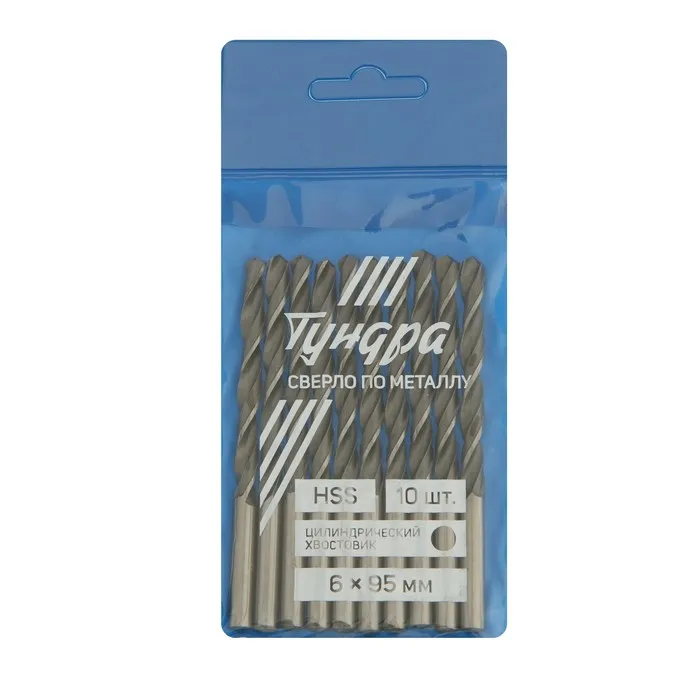 Сверло по металлу ТУНДРА, HSS, цилиндрический хвостовик, 6×95 мм,10 шт. — Характеристики