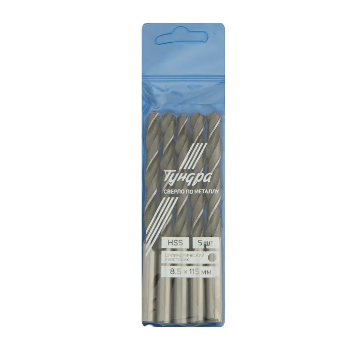 Сверло по металлу ТУНДРА, HSS, цилиндрический хвостовик, 8.5×115 мм, 5 шт. — Характеристики