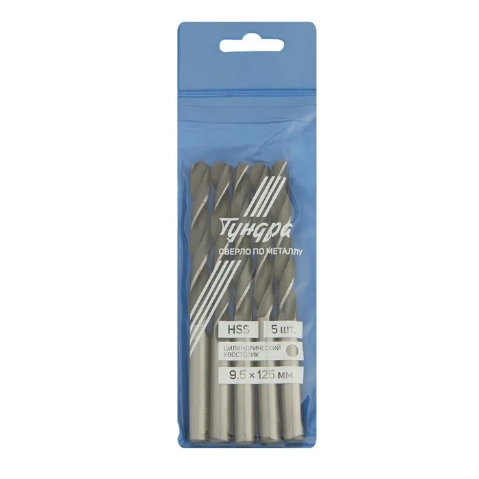 Сверло по металлу ТУНДРА, HSS, цилиндрический хвостовик, 9.5×125 мм, 5 шт. — Характеристики