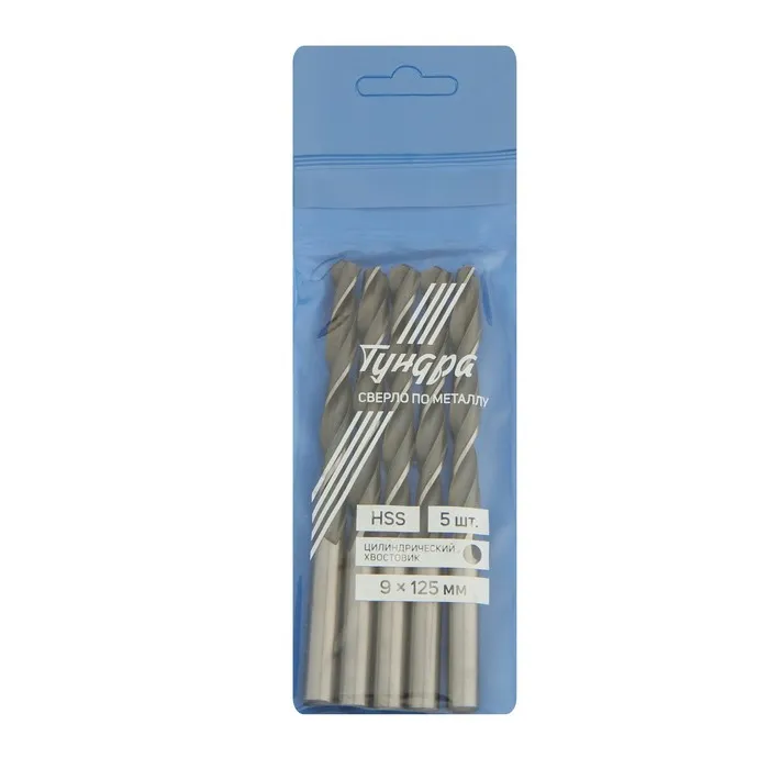Сверло по металлу ТУНДРА, HSS, цилиндрический хвостовик, 9×125 мм, 5 шт. — Характеристики