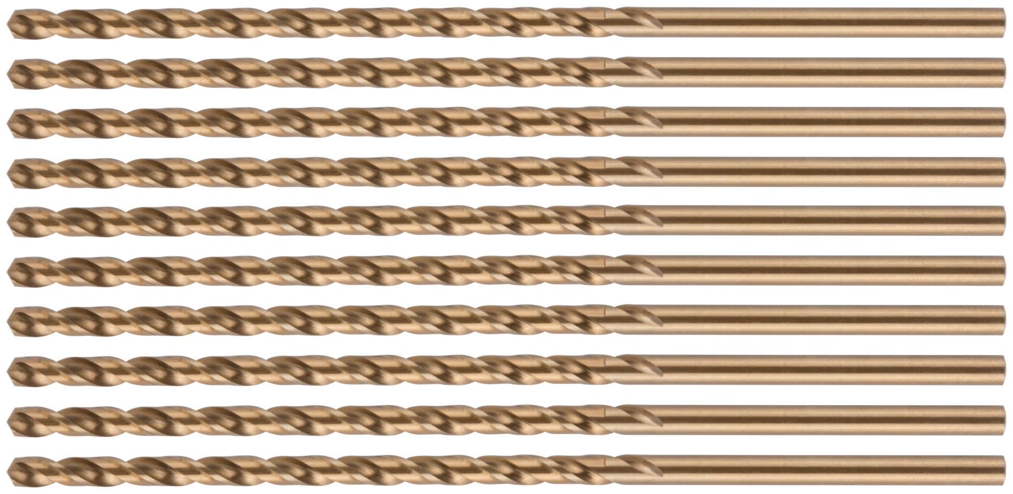 Сверло изготовлено из быстрорежущей HSS стали с добавлением 5% кобальта (P6M5K5), что увеличивает его прочность и термостойкость. Угол заточки в 135 градусов и цилиндрический хвостовик обеспечивают легкий старт сверления и минимальное сопротивление.