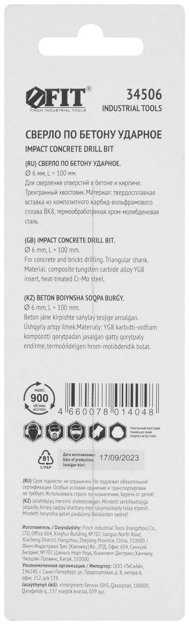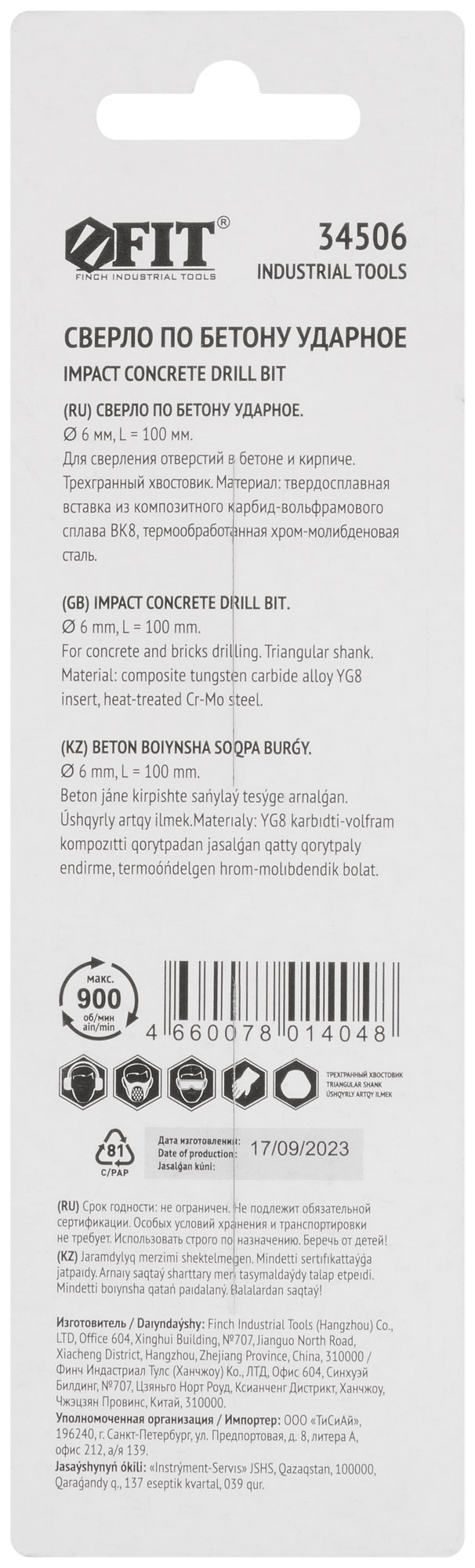 Выберите сверло FIT 6х100 мм для надежного и эффективного сверления в строительных проектах.