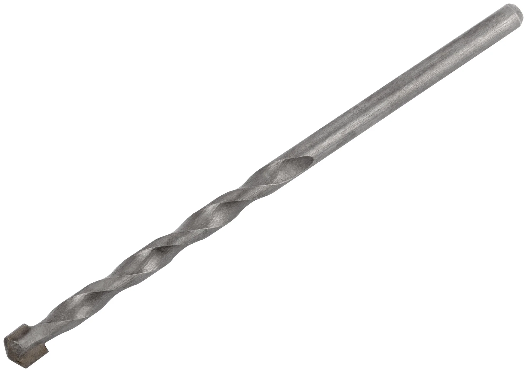 Сверло изготовлено из легированной инструментальной стали 40Cr и оснащено твердосплавной вставкой, что обеспечивает его прочность и устойчивость к износу. Цилиндрический хвостовик обеспечивает надежное крепление в патроне дрели.