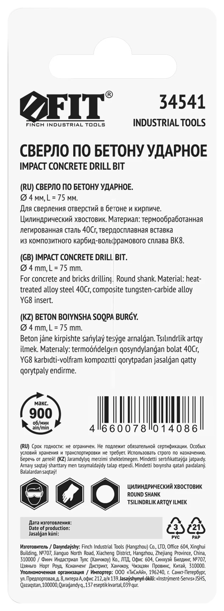 Выберите сверло FIT 34541, чтобы обеспечить надежное и эффективное сверление в твердых материалах.