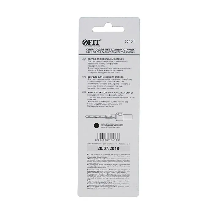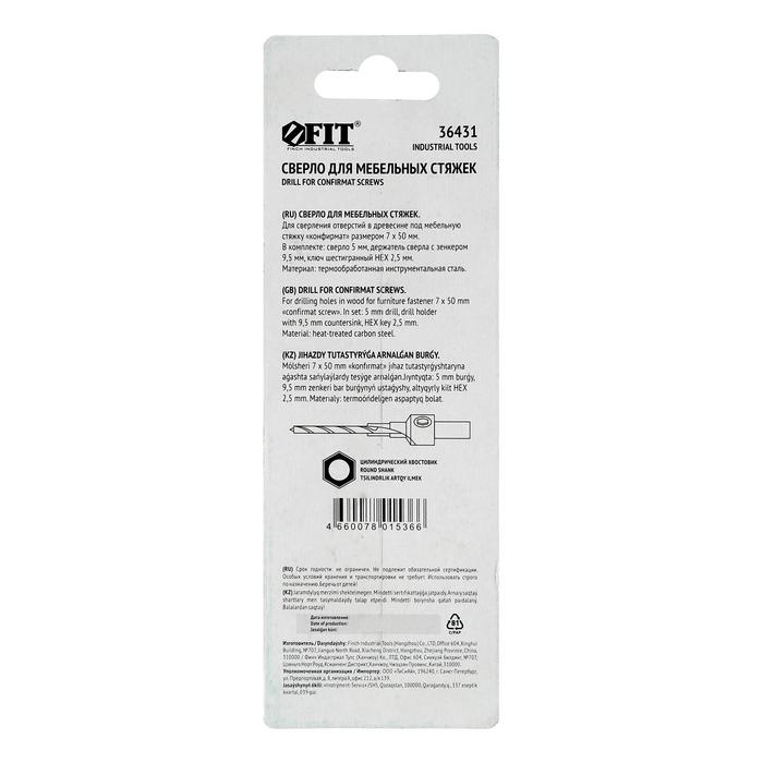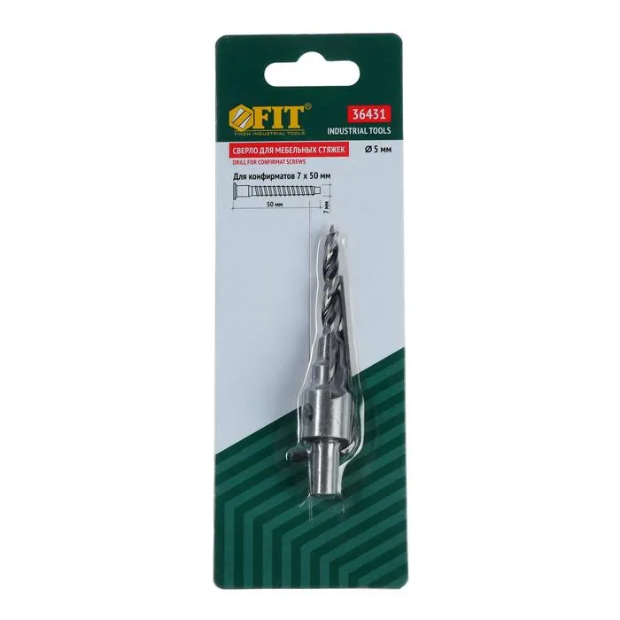 Сверло под конфирмат FIT 36431, для мебельных стяжек, 5 мм/зенкер 9.5 мм, для стяжки 7х50 — Характеристики