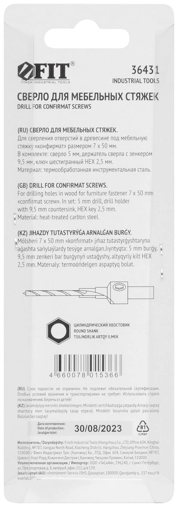 Выберите сверло FIT 36431 и обеспечьте себе надежный и качественный инструмент для работы с мебельными стяжками.