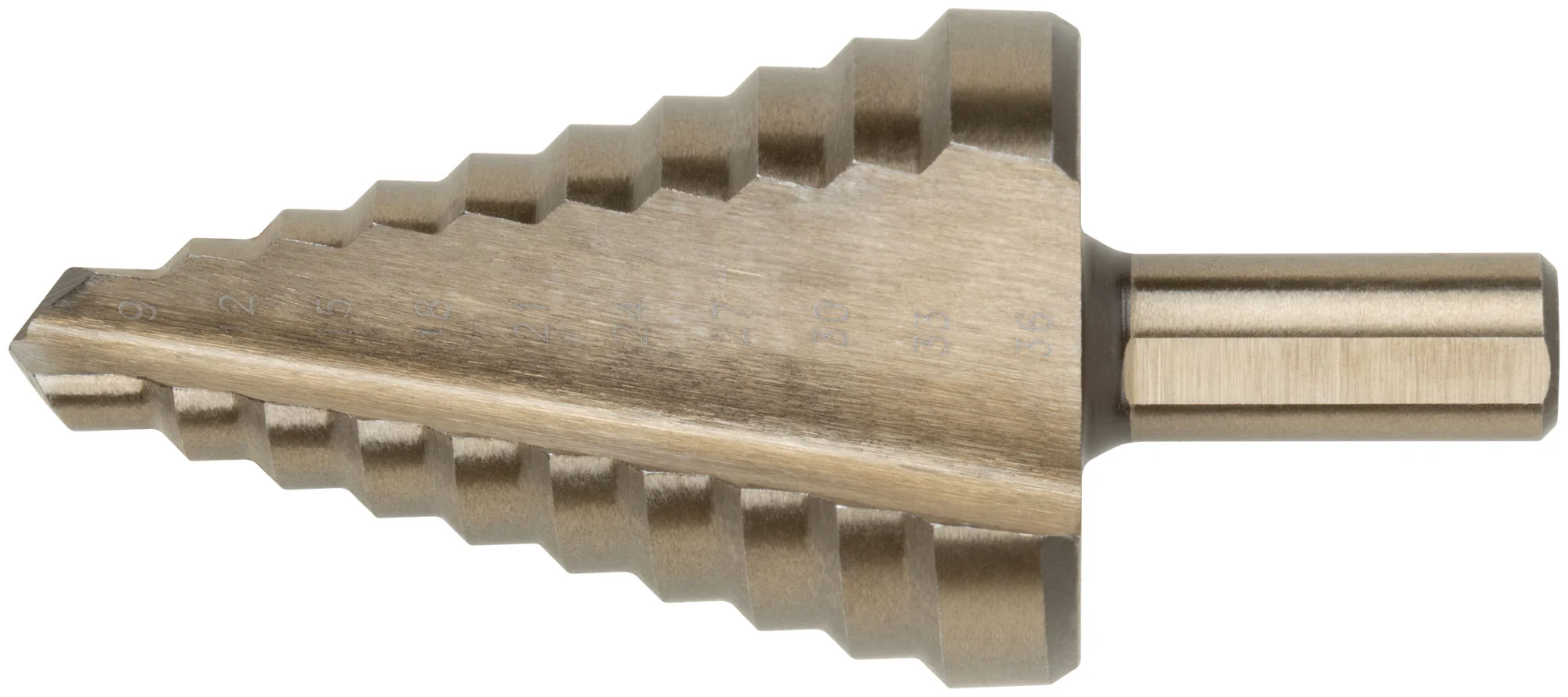 Используйте ступенчатое сверло FIT HQ с кобальтовым покрытием для сверления отверстий в листовом металле и пластике, а также для рассверливания существующих отверстий. Идеально подходит для точных работ, где требуется широкий диапазон диаметров.