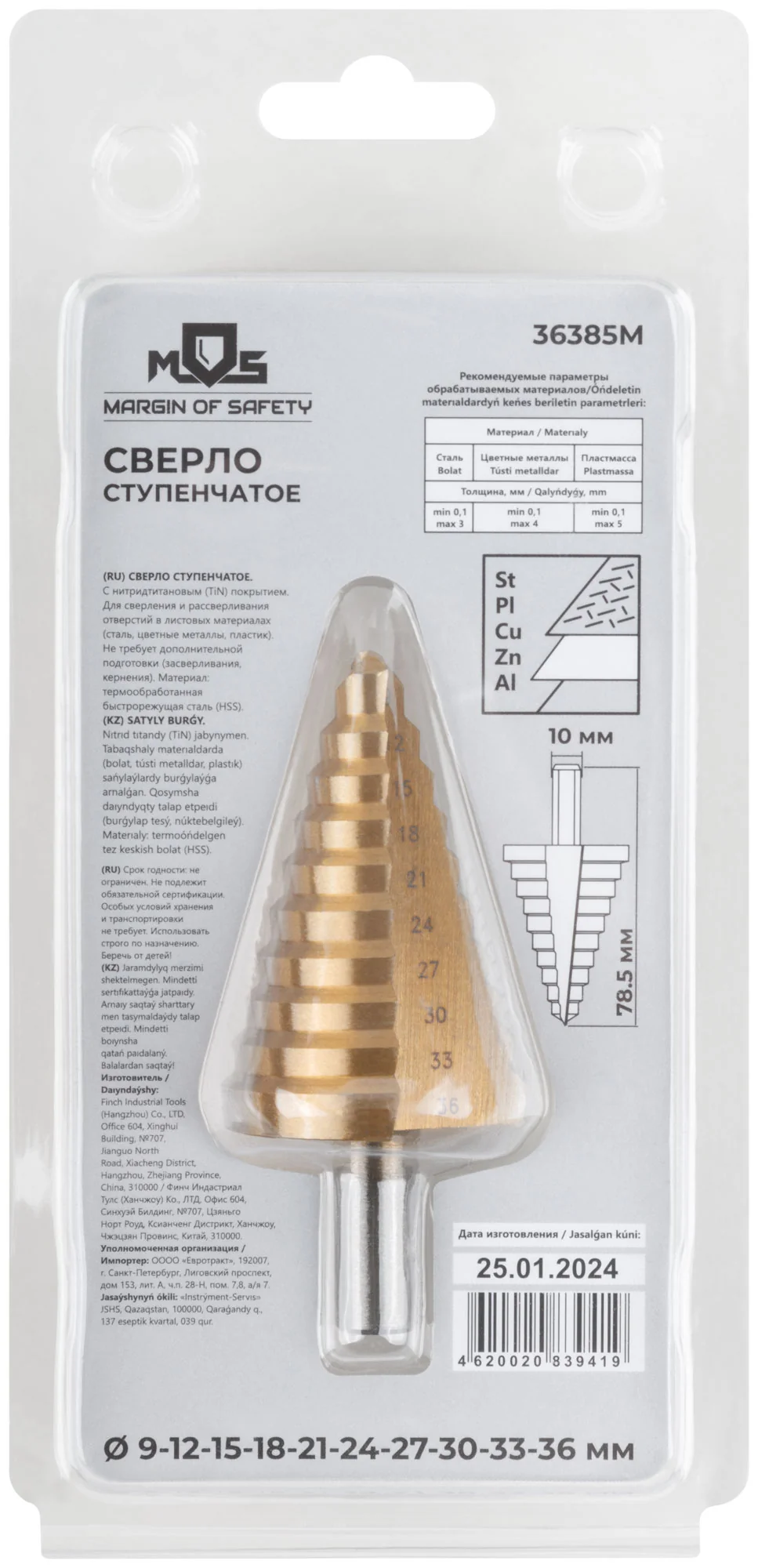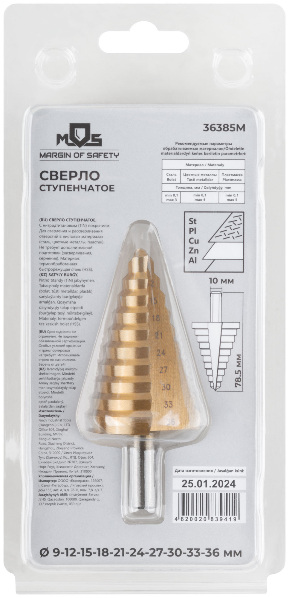 Выберите сверло ступенчатое HSS MOS, чтобы обеспечить себе надежное и качественное сверление. Артикул: 36385М.