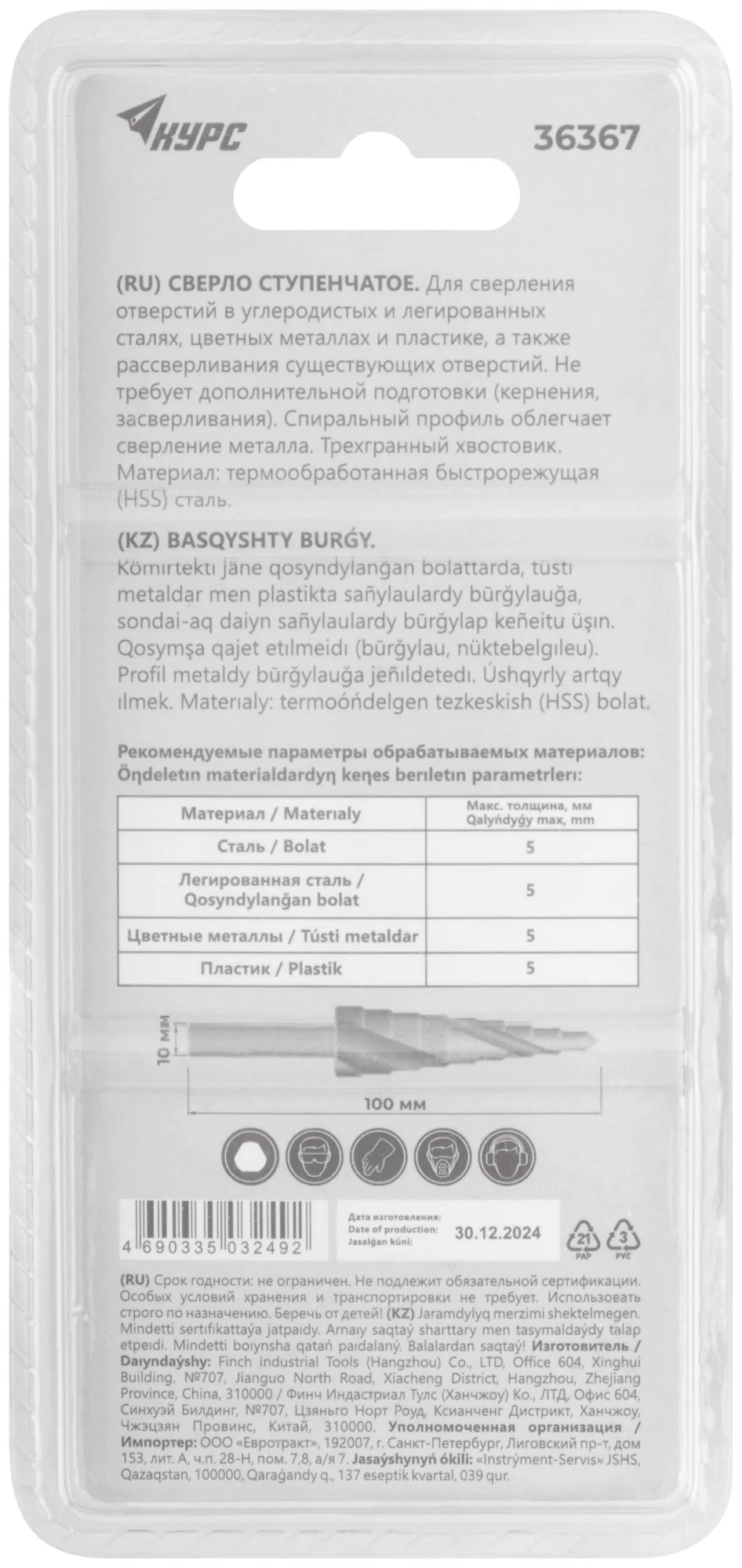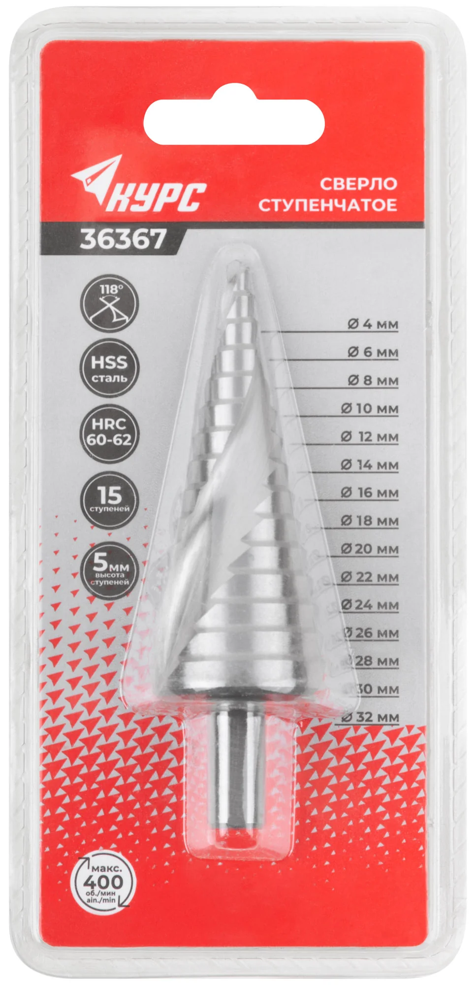 Товар упакован в двойной блистер, что обеспечивает сохранность и удобство хранения. Благодаря широкому диапазону ступеней от 4 до 32 мм, сверло подходит для различных задач.