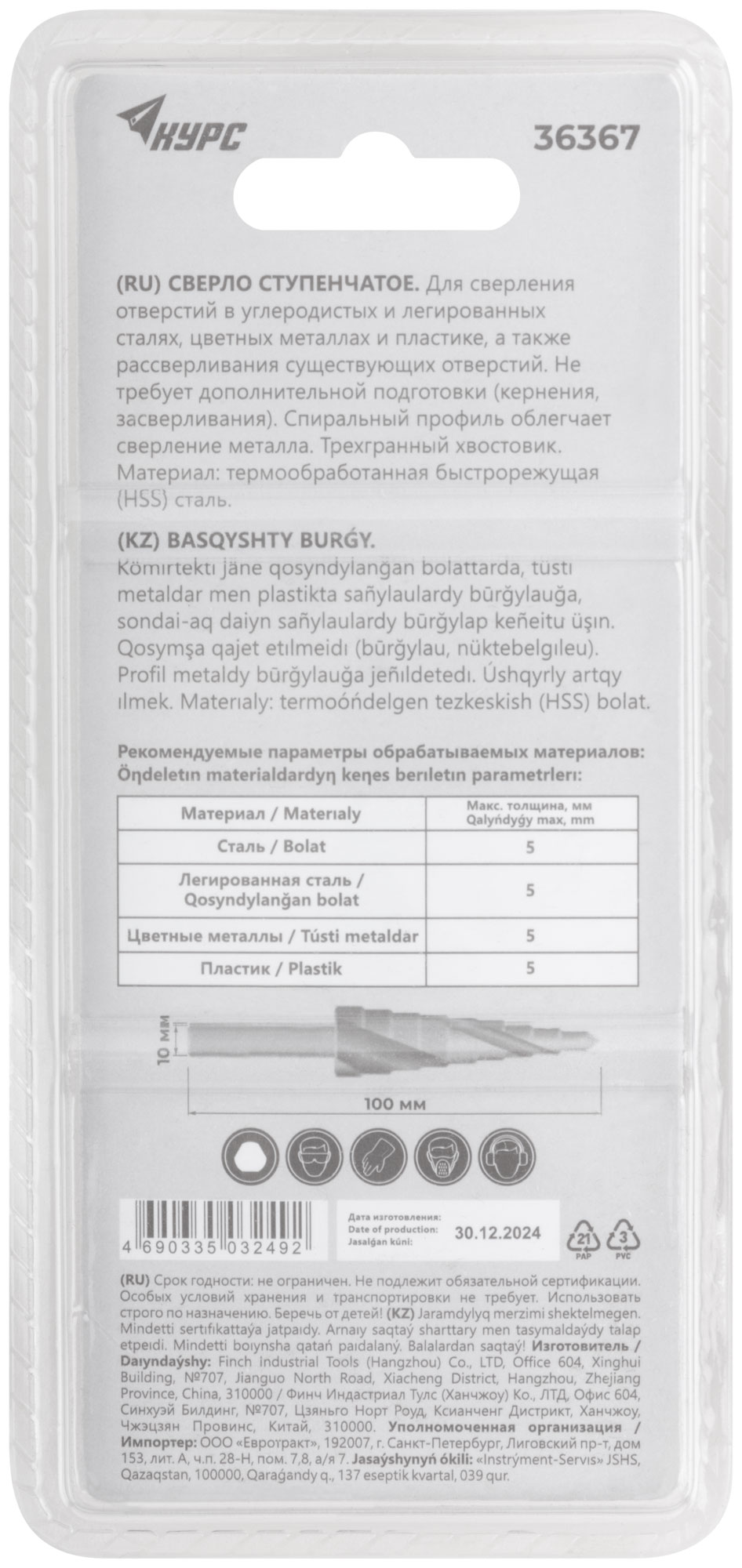 Выберите сверло ступенчатое HSS 4-32 мм от бренда КУРС, чтобы облегчить и ускорить процесс сверления разнообразных материалов.