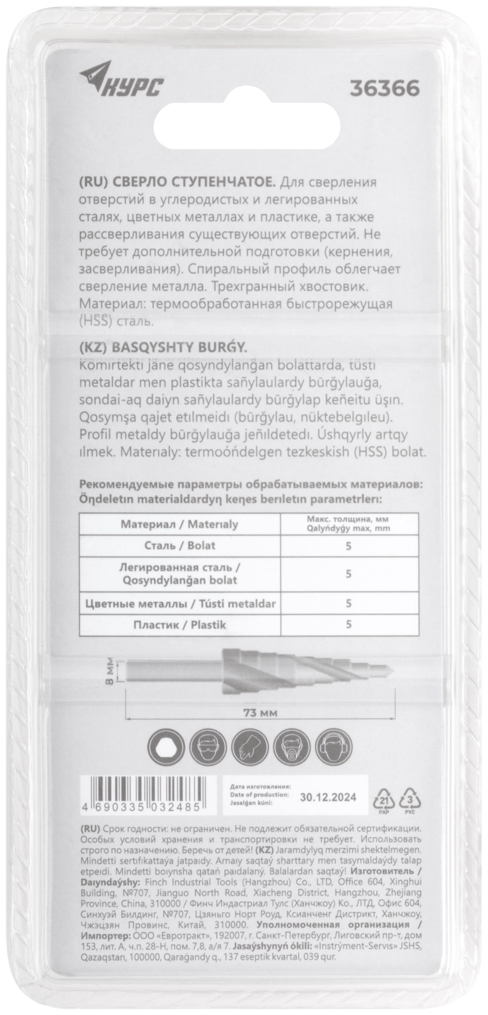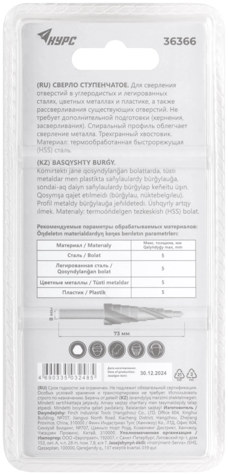 Выберите сверло ступенчатое HSS от КУРС, чтобы обеспечить себя надежным инструментом для различных задач в сфере металлообработки и монтажа.