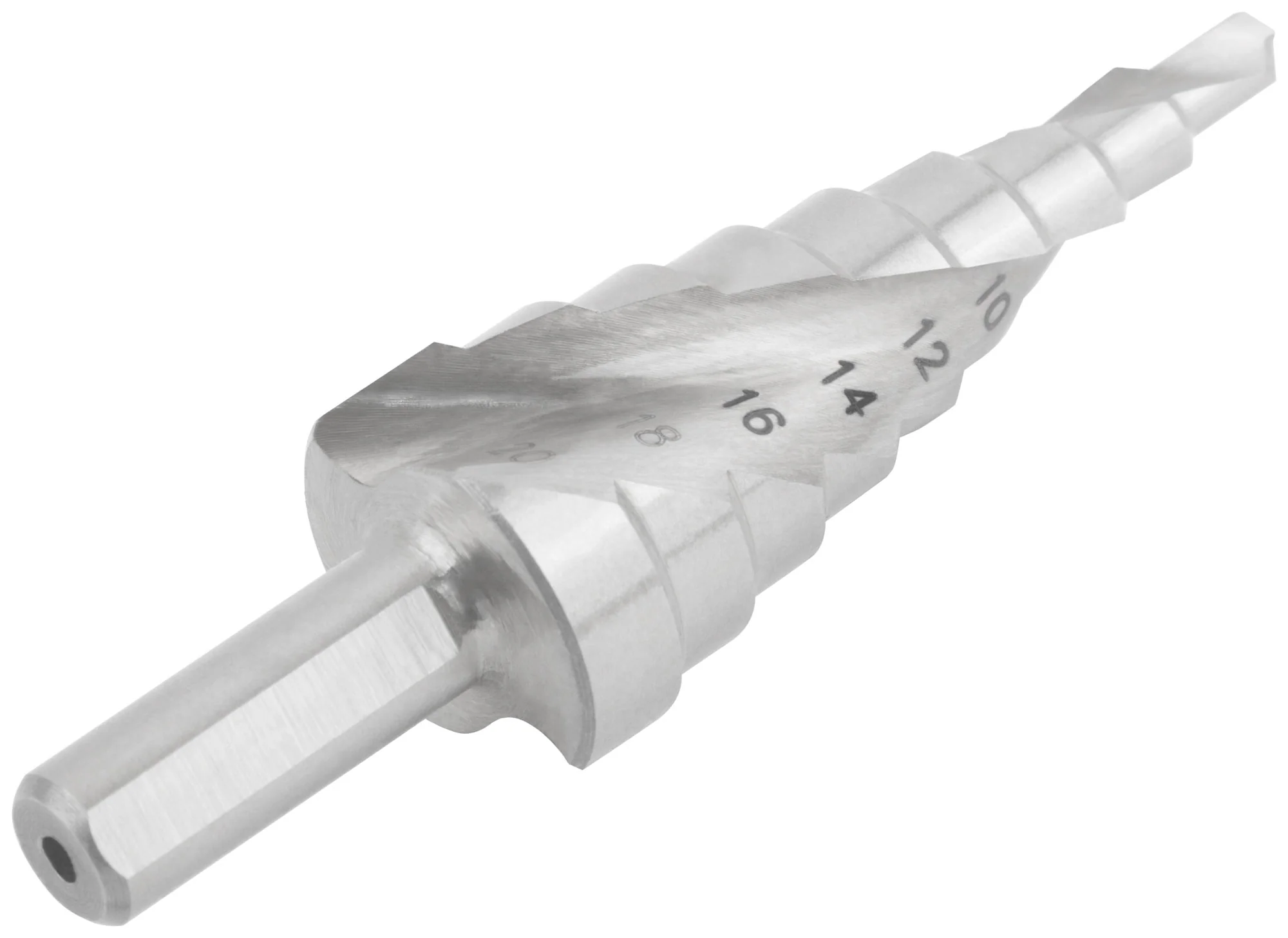 Преимущества данного сверла включают в себя возможность работы без предварительного засверливания и кернения, что экономит время и усилия мастера. Его 9 ступеней позволяют создавать отверстия различных диаметров от 4 до 20 мм, что делает его многофункциональным инструментом в арсенале профессионала.