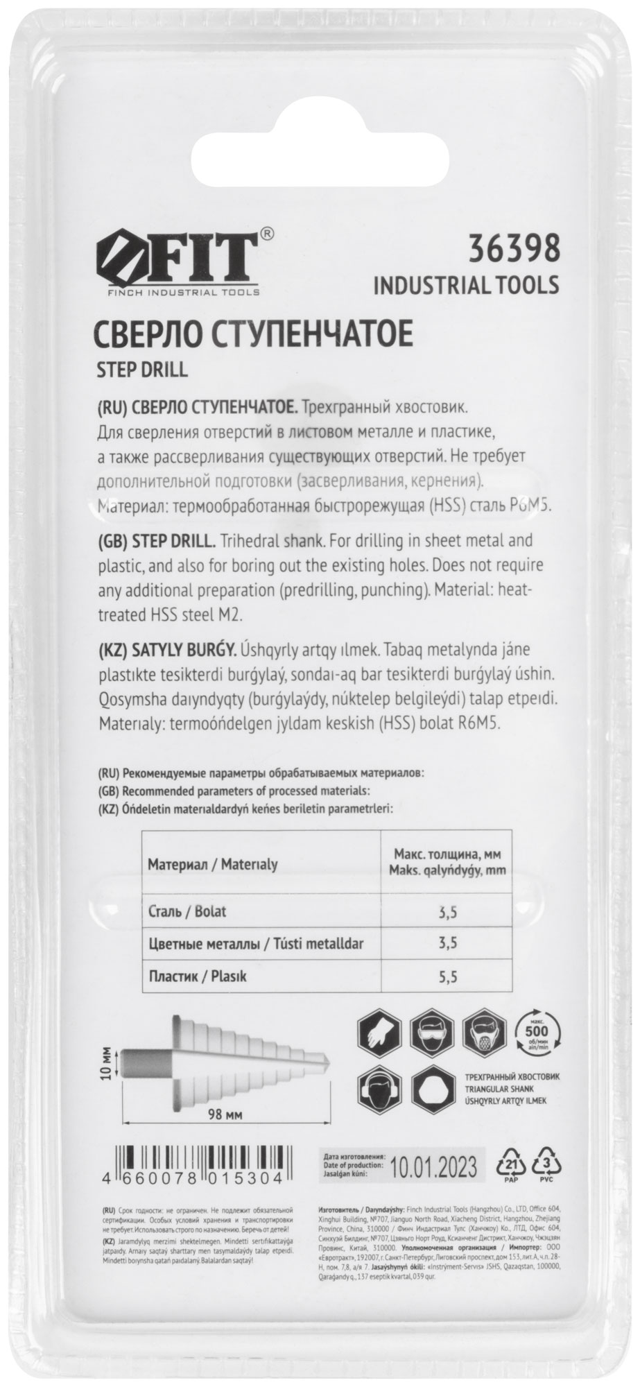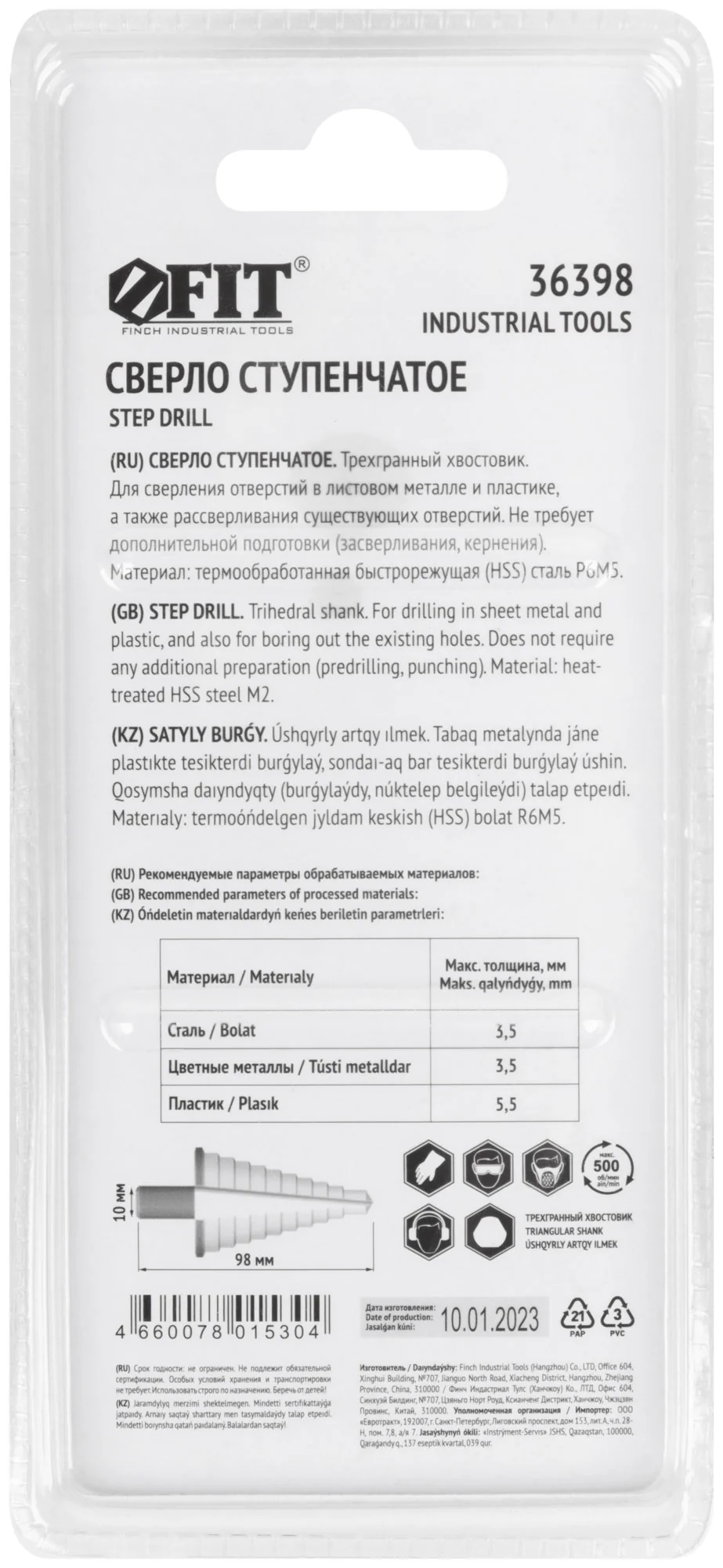 Выберите сверло ступенчатое FIT, чтобы обеспечить себе удобство и точность в работе с металлами и пластмассой. Код товара: 36398.