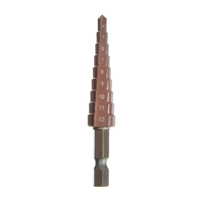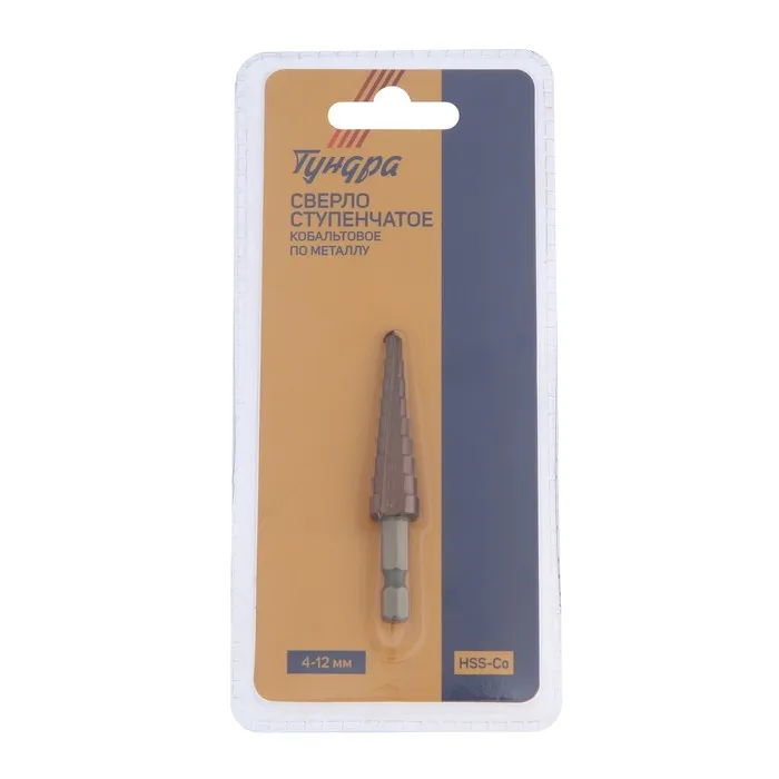 Сверло ступенчатое ТУНДРА, HSS-Co, шестигранный хвостовик, 4 - 12 мм — Характеристики