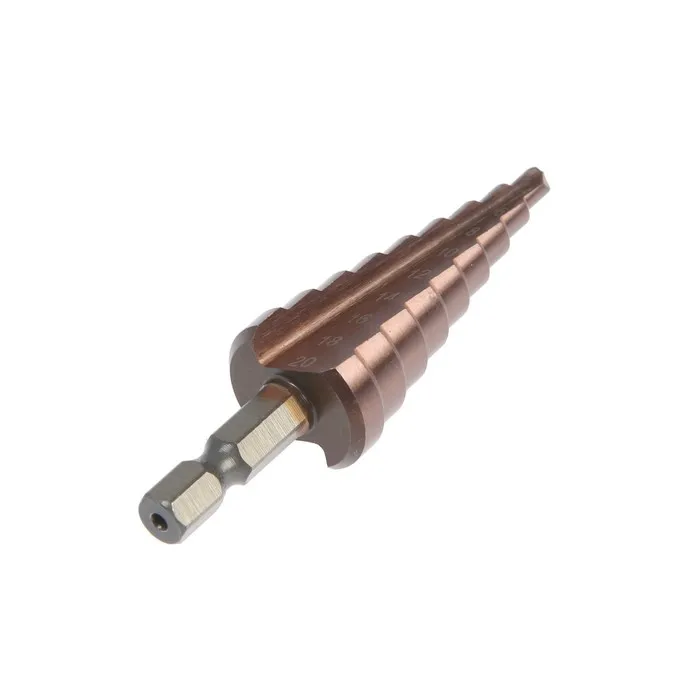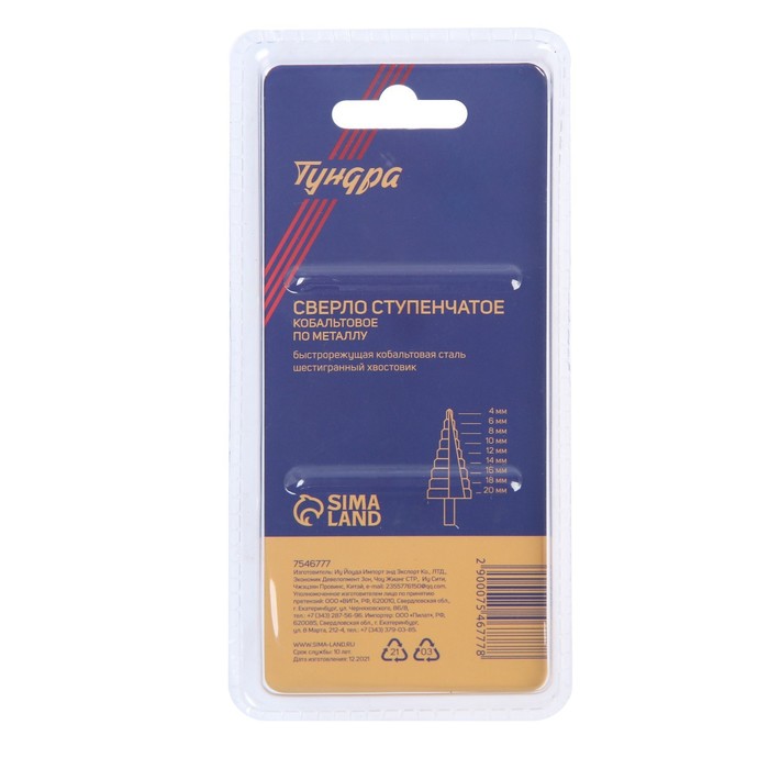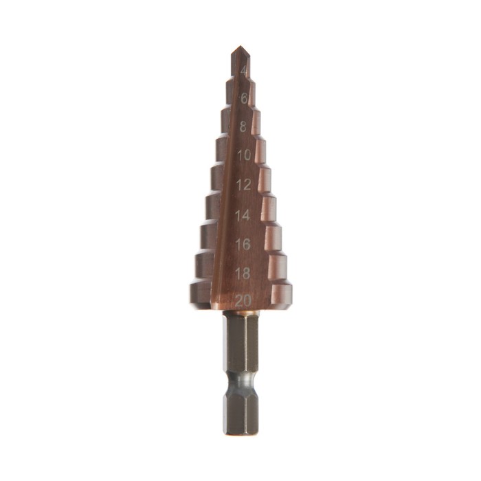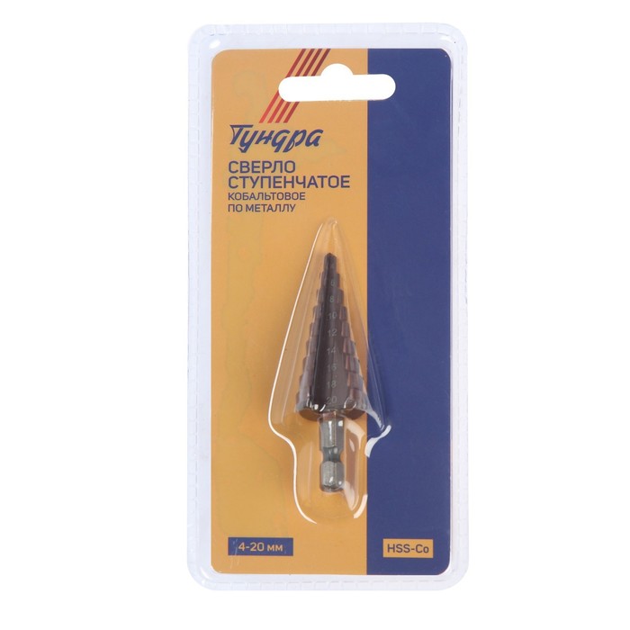 Сверло ступенчатое ТУНДРА, HSS-Co, шестигранный хвостовик, 4 - 20 мм — Характеристики