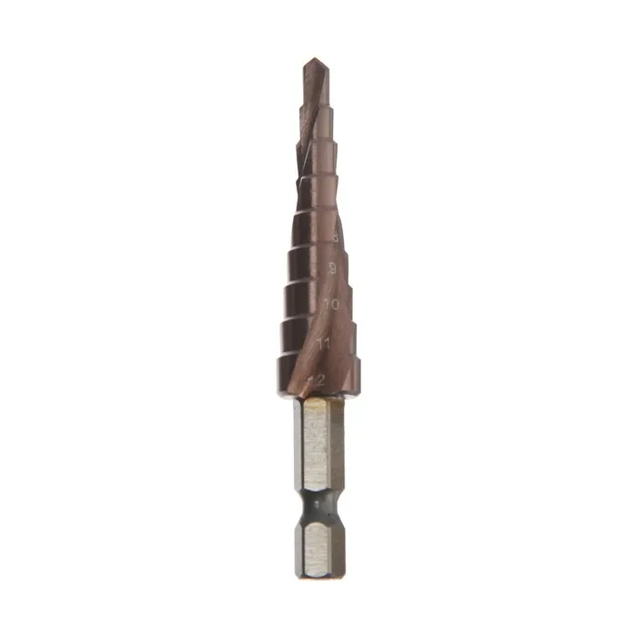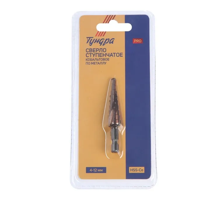 Сверло ступенчатое ТУНДРА ПРОФИ, HSS-Co, спиральный профиль, шестигранный хвостовик, 4-12 мм — Характеристики