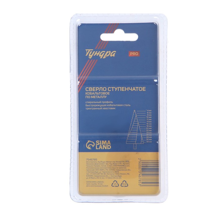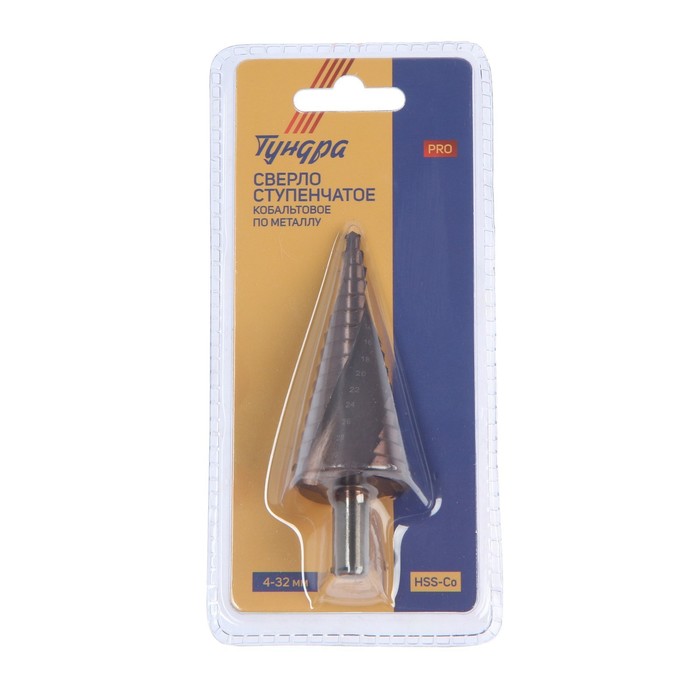 Сверло ступенчатое ТУНДРА ПРОФИ, HSS-Co, спиральный профиль, трехгранный хвостовик, 4-32 мм — Характеристики