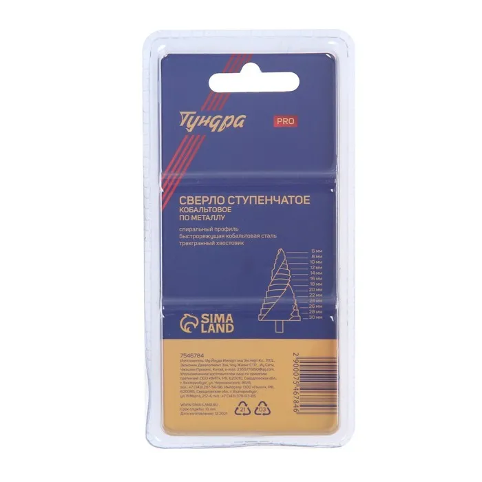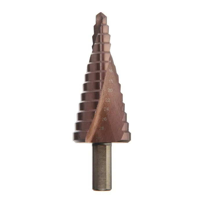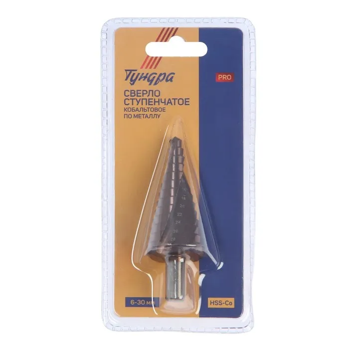 Сверло ступенчатое ТУНДРА ПРОФИ, HSS-Co, спиральный профиль, трехгранный хвостовик, 6-30 мм — Характеристики