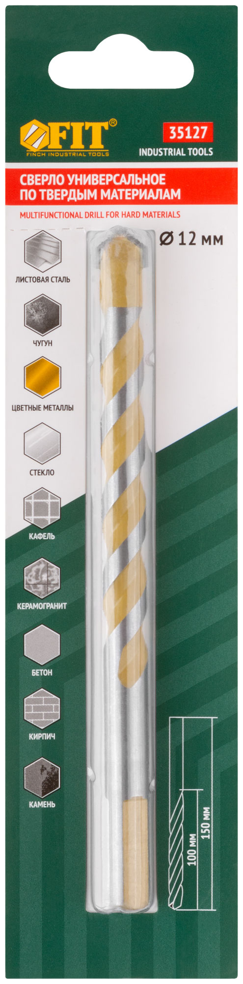 Сверло универсальное FIT 12х150 мм — идеальный выбор для мастеров, которым необходимо выполнять работы с широким спектром материалов. Это сверло позволяет без труда сверлить листовую сталь, чугун, цветные металлы, стекло, керамическую плитку и керамогранит. Также оно эффективно справляется с ударным сверлением бетона, кирпича, гранита и других твердых материалов.