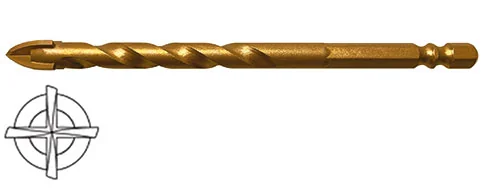 Сверло оснащено четырьмя режущими кромками, что обеспечивает лучшую центровку и высокую чистоту сверления. U-образный хвостовик под биту обеспечивает надежное крепление и удобство в работе. Корпус изготовлен из легированной стали 40Cr с нитрид-титановым покрытием, что гарантирует долговечность и устойчивость к износу. Твердосплавная вставка из карбида вольфрама ВК6 добавляет прочности.