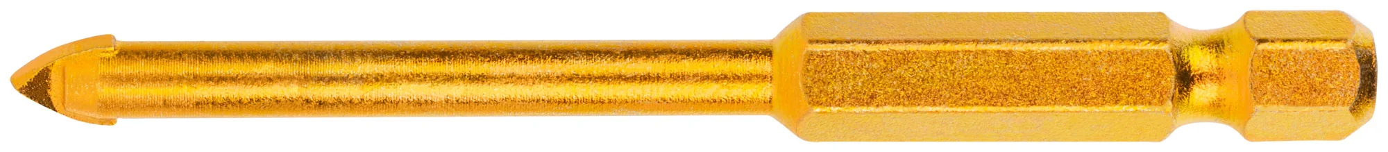 Корпус сверла изготовлен из легированной стали 40Cr и покрыт желтым цинком, что обеспечивает долговечность и защиту от коррозии. Режущая вставка выполнена из карбида вольфрама ВК6, увеличивая эффективность реза и продлевая срок службы инструмента. U-образный хвостовик под биту делает использование сверла удобным и универсальным.