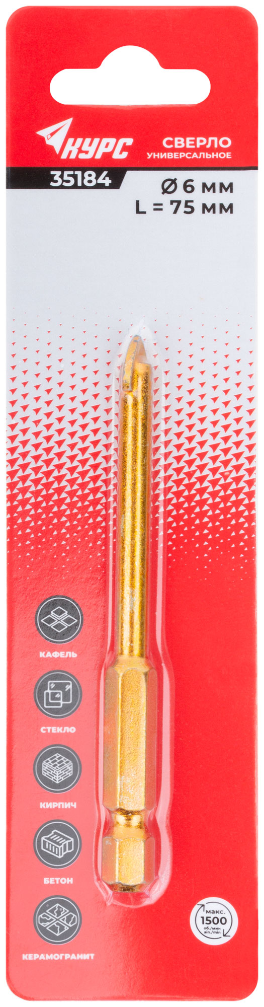 Выберите сверло КУРС 6х75 мм, артикул 35184, чтобы обеспечить себе высокое качество и универсальность на рабочем месте.