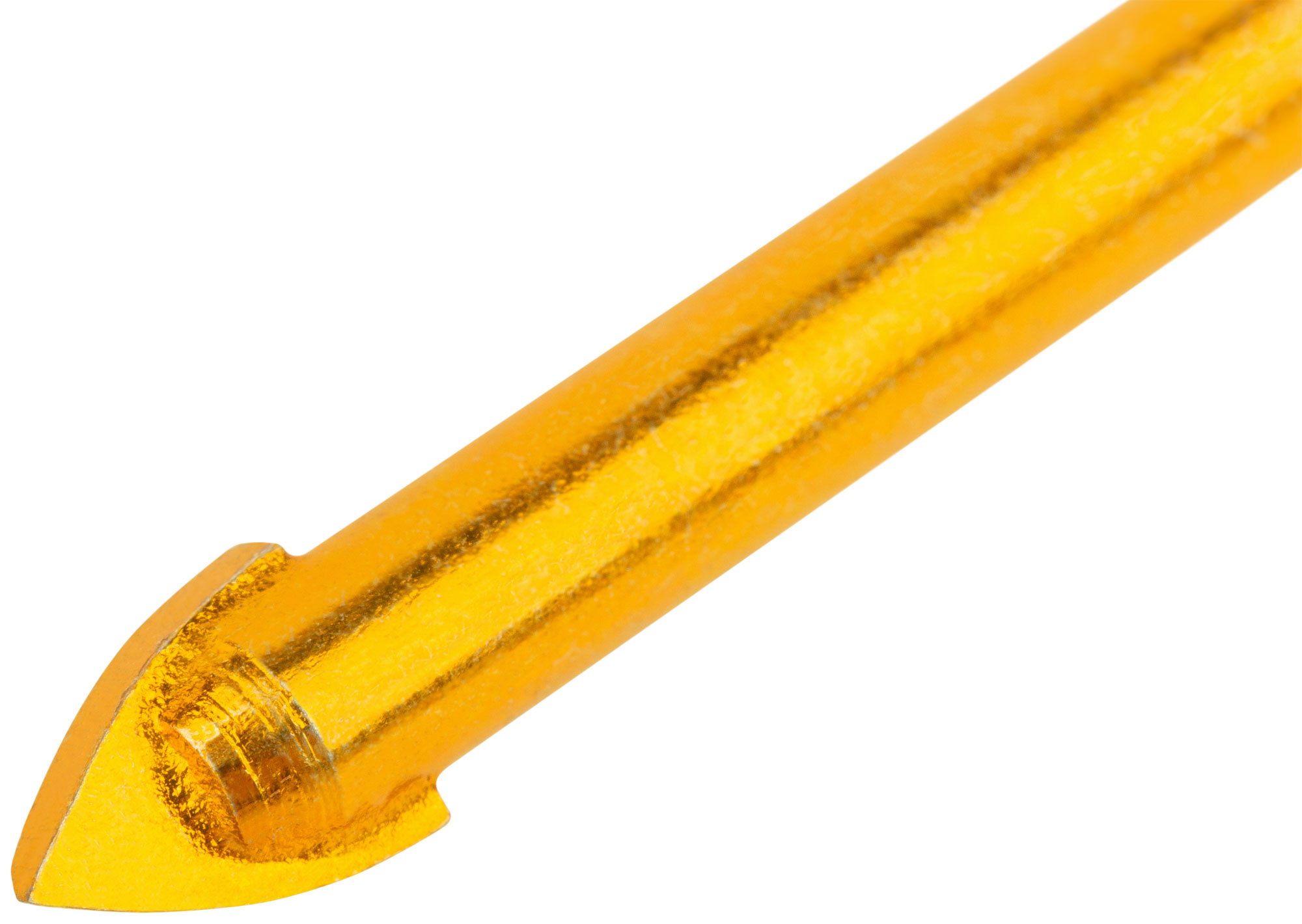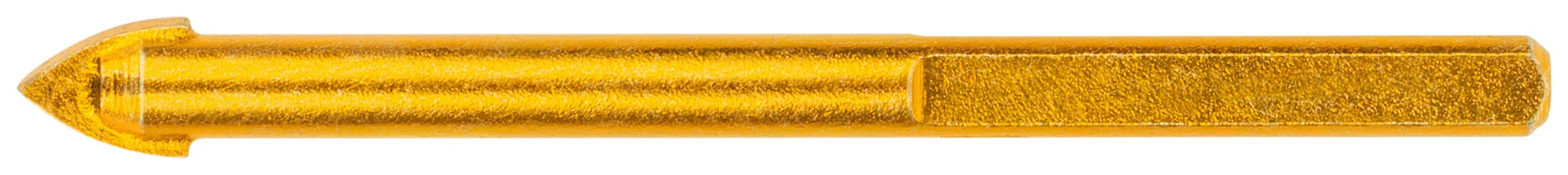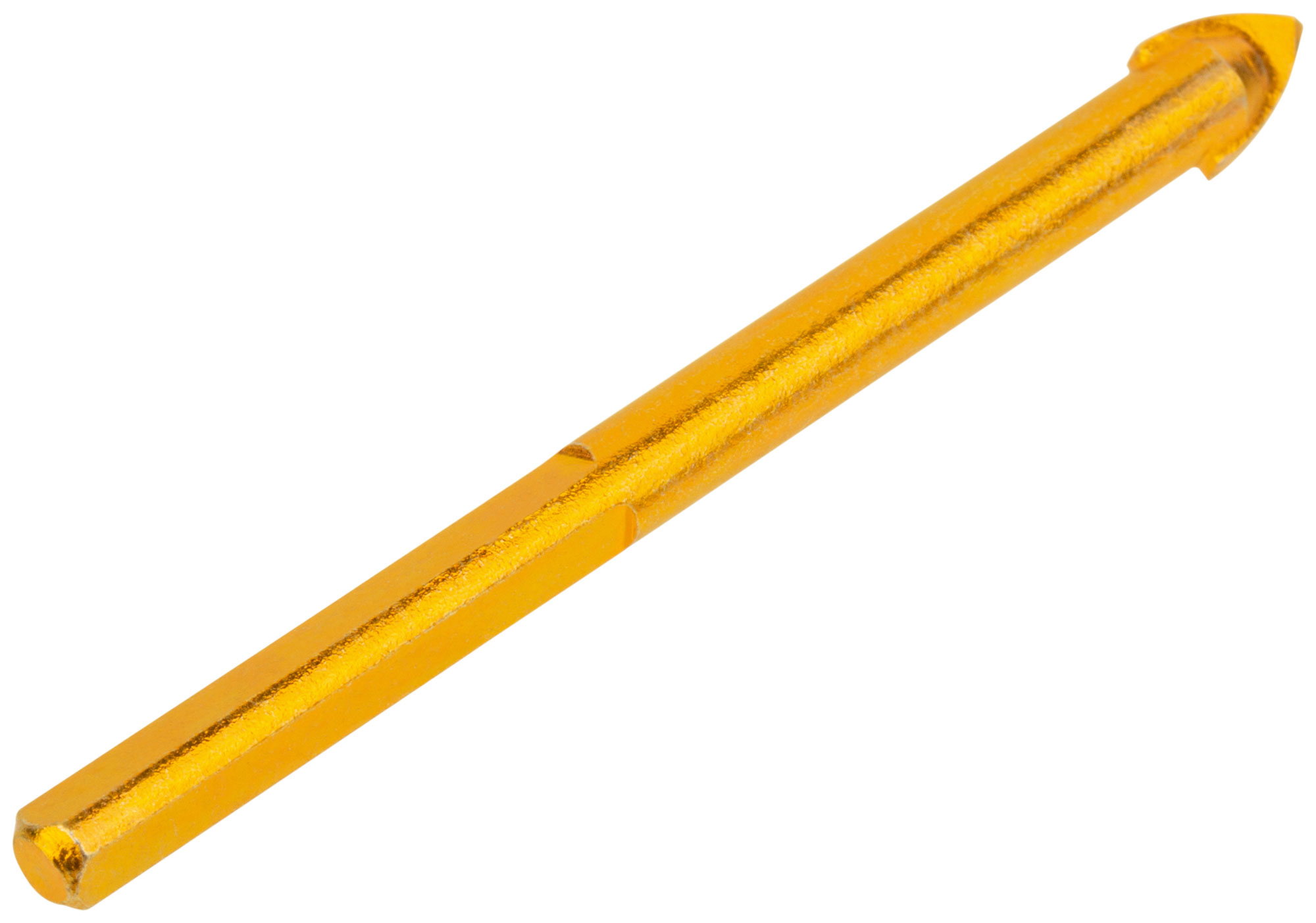 Сверло имеет трехгранный хвостовик, что обеспечивает надежную фиксацию в патроне и предотвращает проскальзывание. Корпус изготовлен из легированной стали 40Cr и покрыт желтым цинком, что защищает его от коррозии. Режущая вставка из карбида вольфрама ВК6 гарантирует долговечность и устойчивость к износу даже при частом использовании.