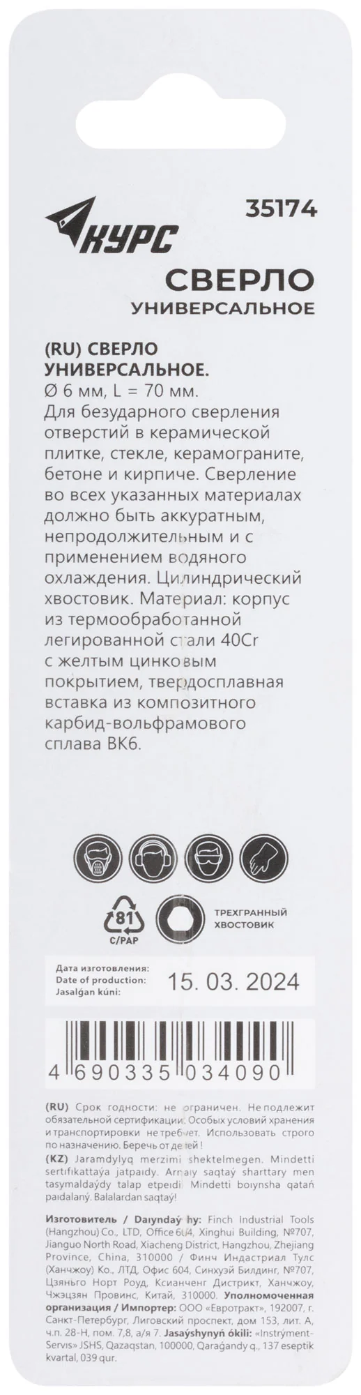 Выберите сверло КУРС 35174 для точного и надежного сверления в любых строительных материалах.