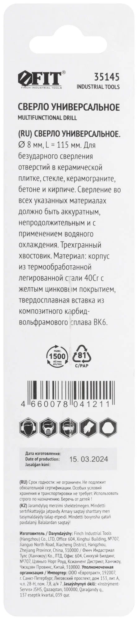 Выберите сверло FIT 35145, чтобы обеспечить себе надежность и эффективность при работе с различными материалами.