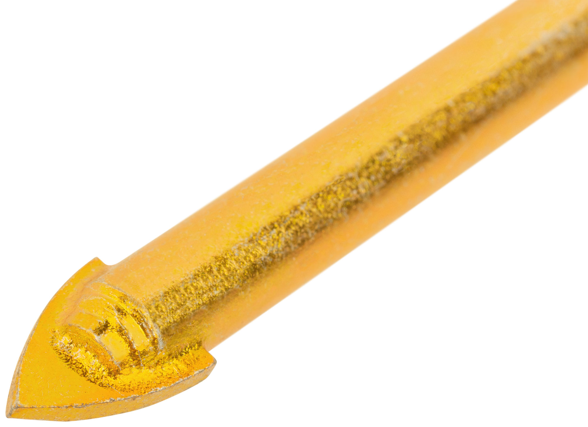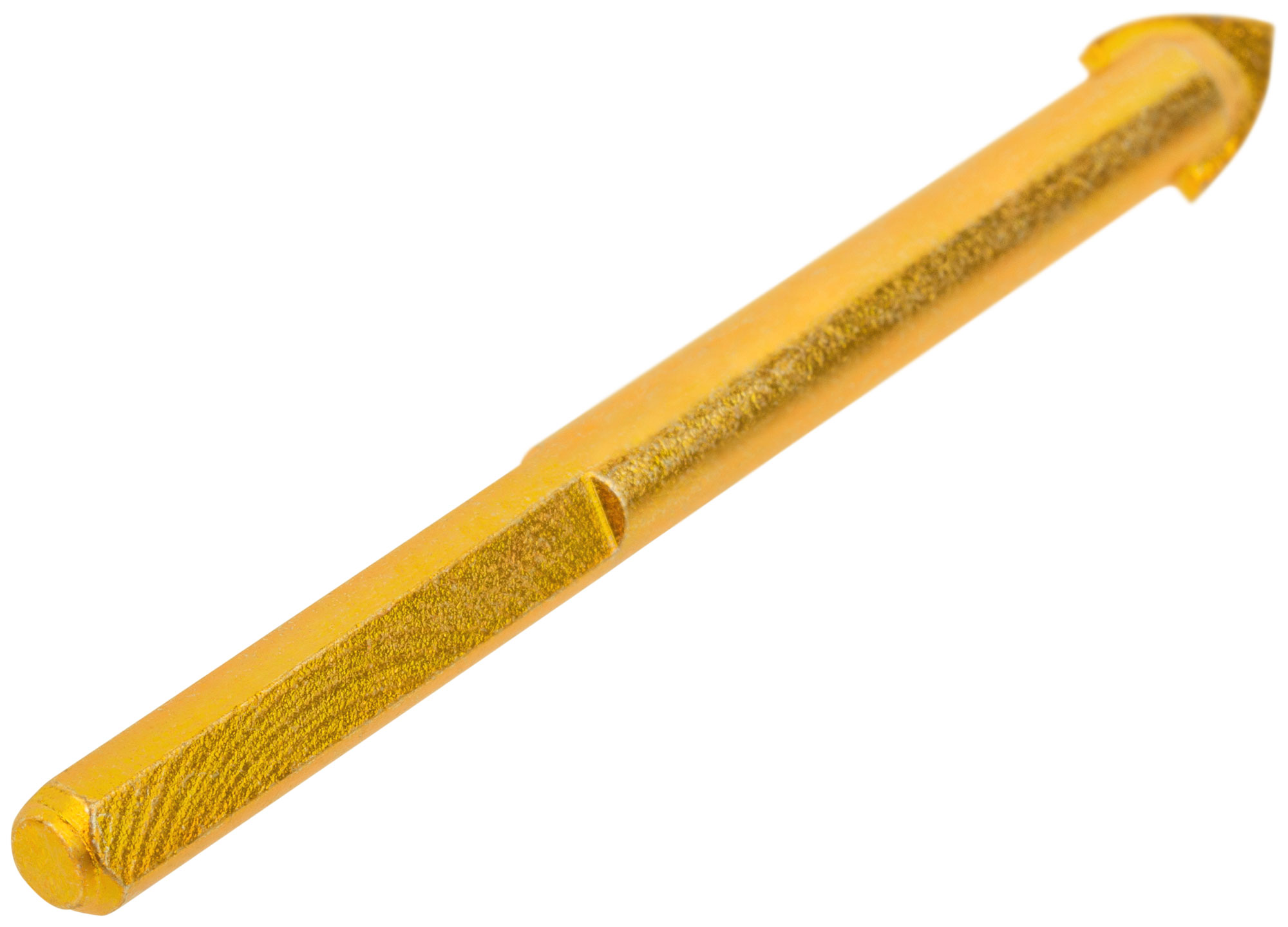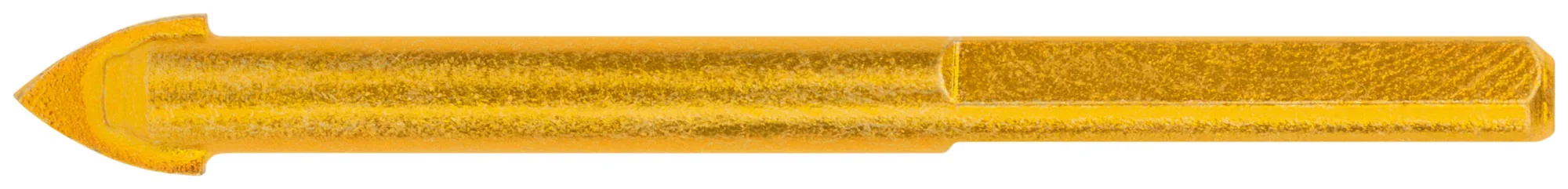 Сверло оснащено трехгранным хвостовиком, обеспечивающим надежный захват в патроне. Изготовлено из легированной стали 40Cr с желтым цинковым покрытием, а режущая вставка выполнена из карбида вольфрама ВК6, что гарантирует долговечность и точность.