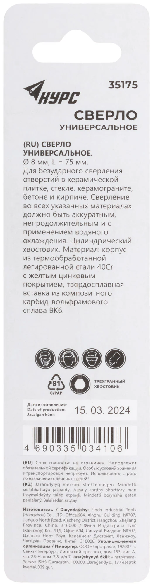 Выберите сверло КУРС 35175, чтобы обеспечить качественное и точное сверление различных материалов.
