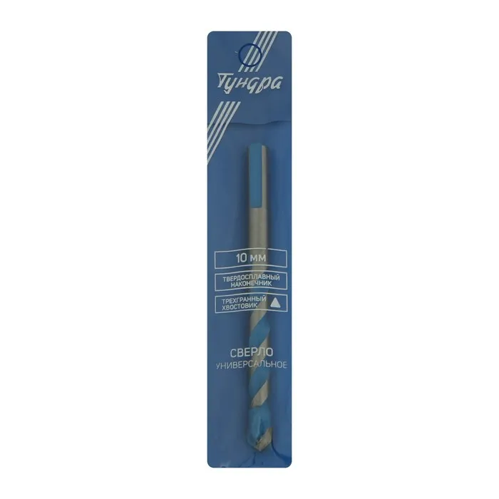 Сверло универсальное ТУНДРА, твердосплавный наконечник, трехгранный хвостовик, 10×115 мм — Характеристики