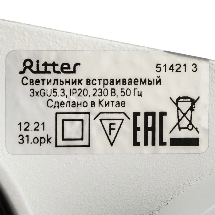 Светильник встраиваемый Ecola 5357, GX53, IP20, 220 В, квадратный, 25x107 мм, белый