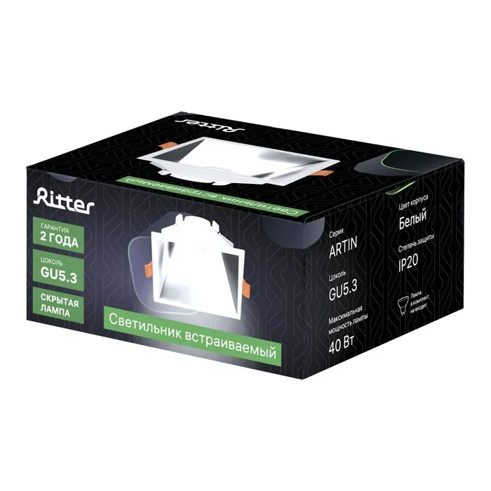 Свет-к встр-й, ARTIN, скрыт ламп квад 84×84х35мм монтаж отв 75×75мм GU5.3 пласт белый — Характеристики