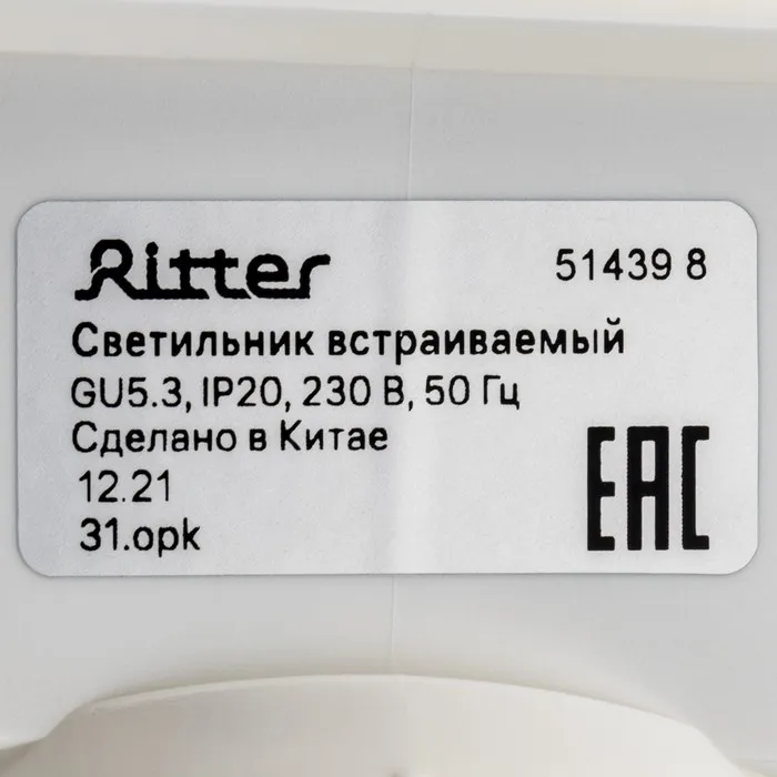 Светильник встраиваемый Ecola 5357, GX53, IP20, 220 В, квадратный, 25x107 мм, белый