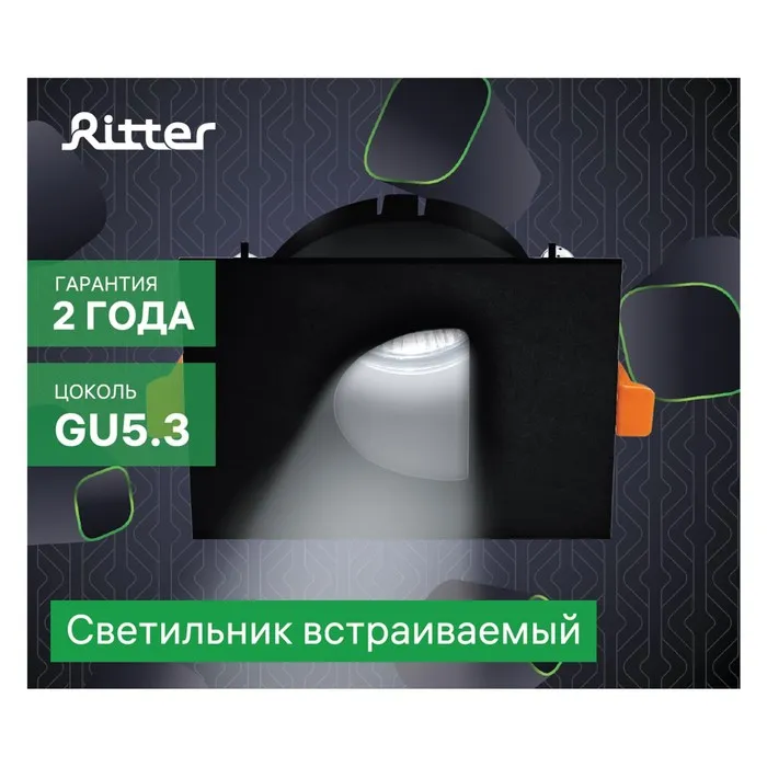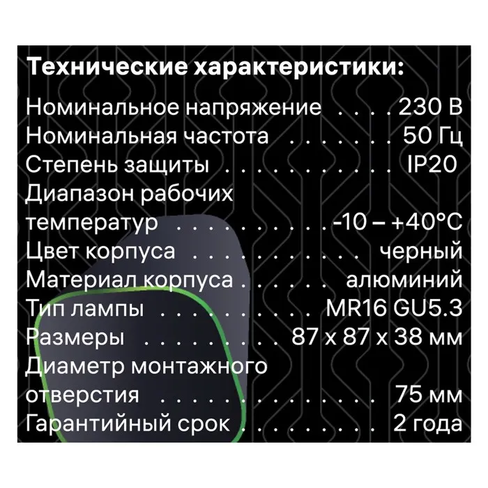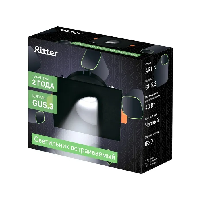 Свет-к встраив-й, ARTIN, квадрат 87×87х38мм монтаж отверстие 75×75мм GU5.3 Al черный — Характеристики