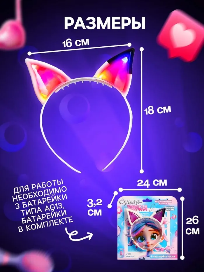 Светящийся ободок «Супер-ушки», свет, звук — Характеристики