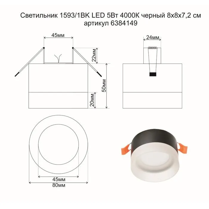 Светильник 1593/1BK LED 5Вт 4000К черный 8х8х7,2 см BayerLux — Характеристики