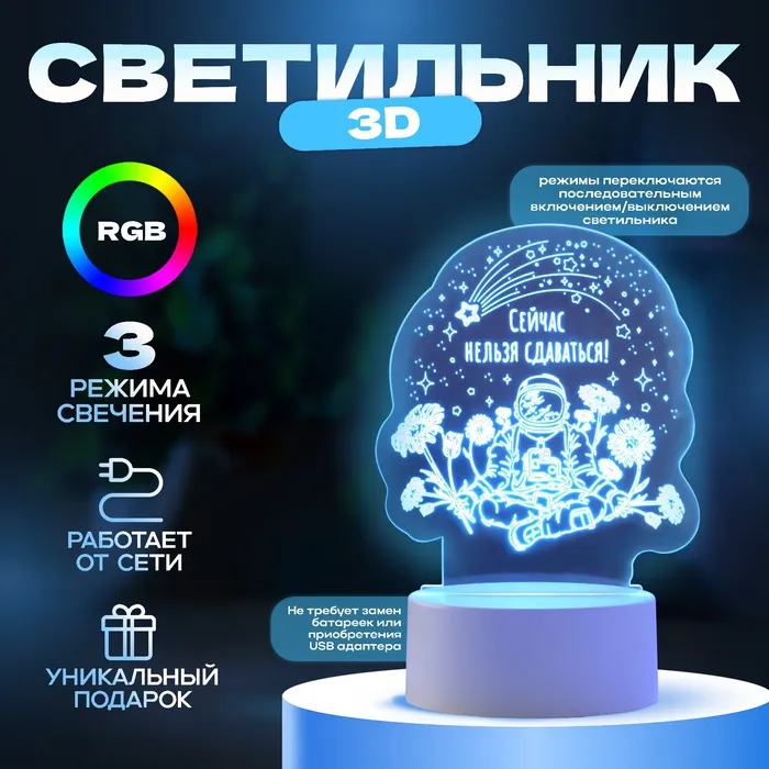 Светильник 3D ночник RISALUX «Будущая победа», LED RGB, от сети — Характеристики